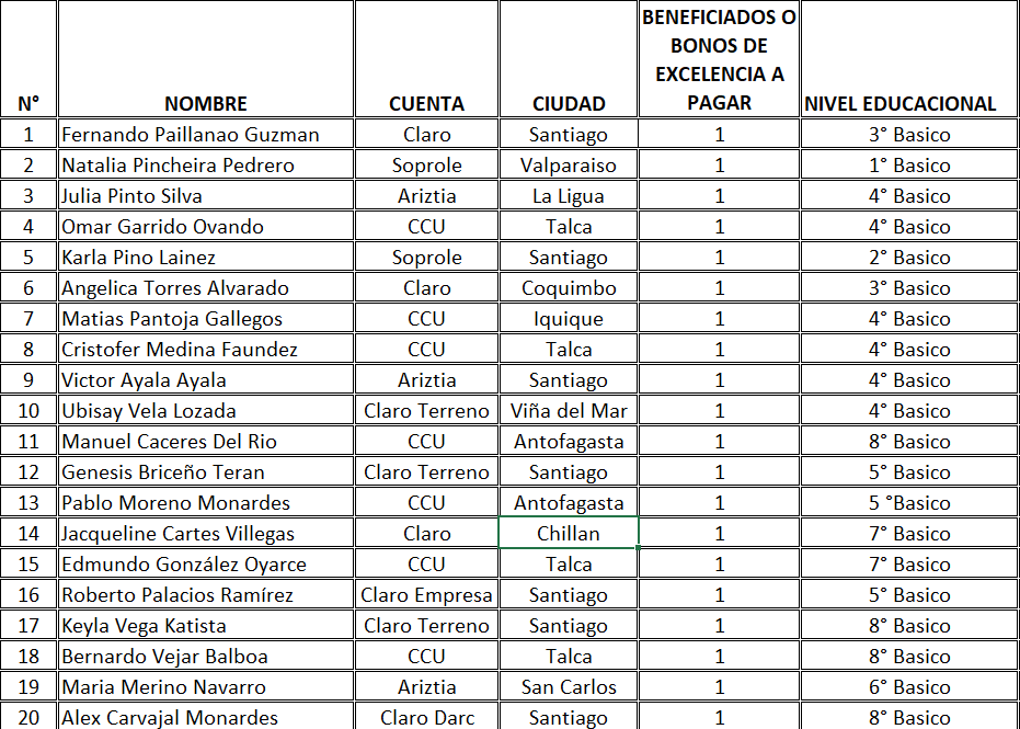 El pasado lunes 13 de abril, a las 12:00 horas, se realizó a través del Facebook del Sindicato Complementos Chile el sorteo en vivo de las 40 becas de excelencia académica, tal como fue informado previamente en nuestras redes sociales. Esta transmisión permitió dar a conocer de manera abierta y transparente a las y los socios beneficiados con este importante apoyo al estudio, contemplado en nuestro contrato colectivo. Cabe recordar que este beneficio considera 40 bonos de apoyo al estudio, destinados tanto a hijos e hijas de trabajadores afectos al contrato colectivo como a trabajadores y trabajadoras que cursen estudios técnicos o universitarios